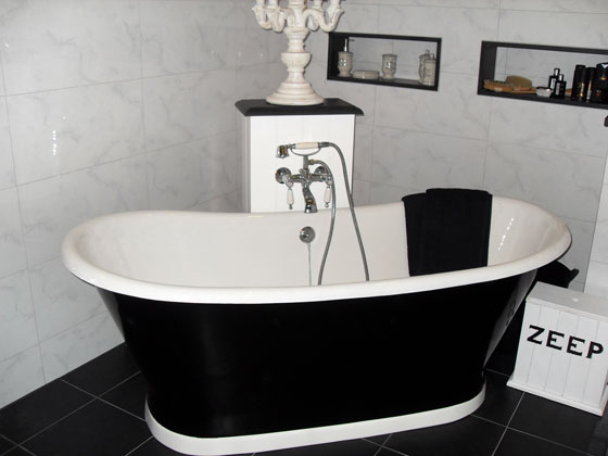 Resultaat pas gerealiseerde badkamer Ansen in Engelse stijl..